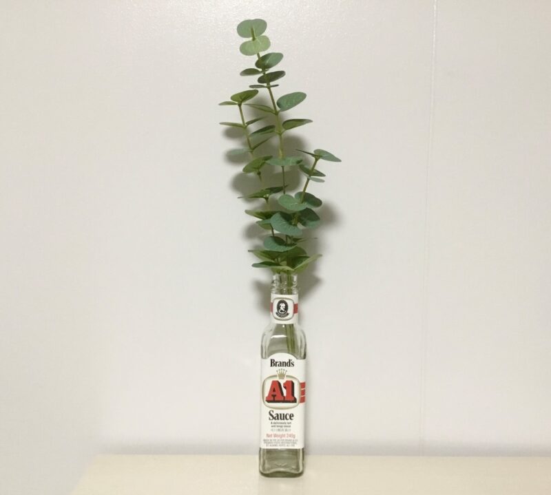 私はA1ソースの空き瓶を一輪挿しにしてインテリアとして使用しています。